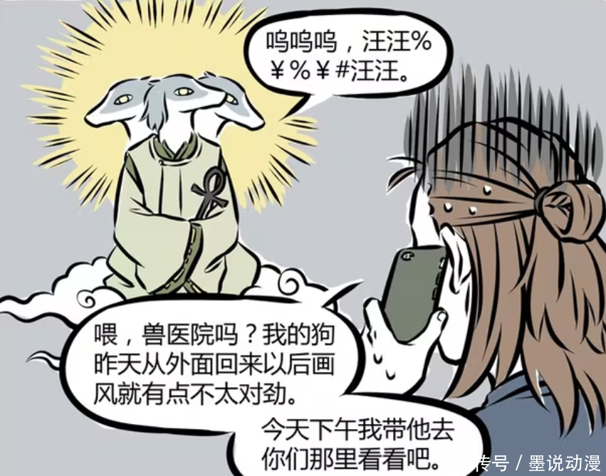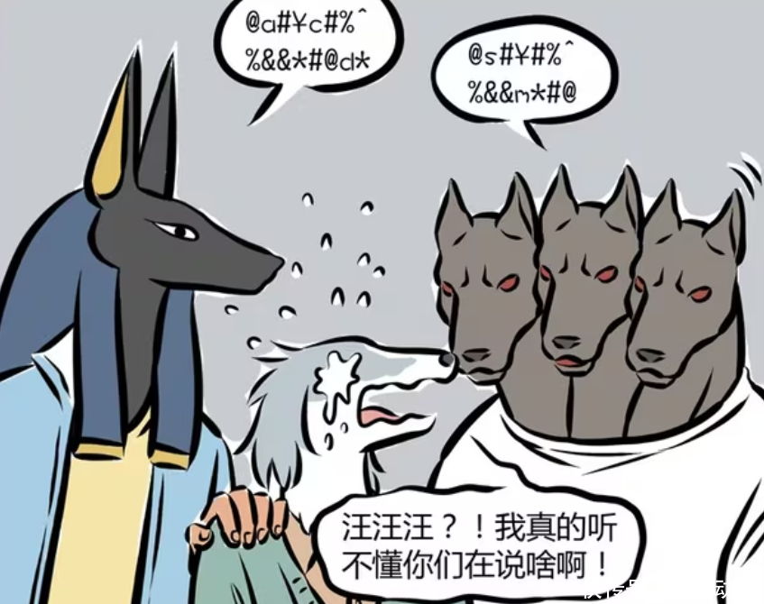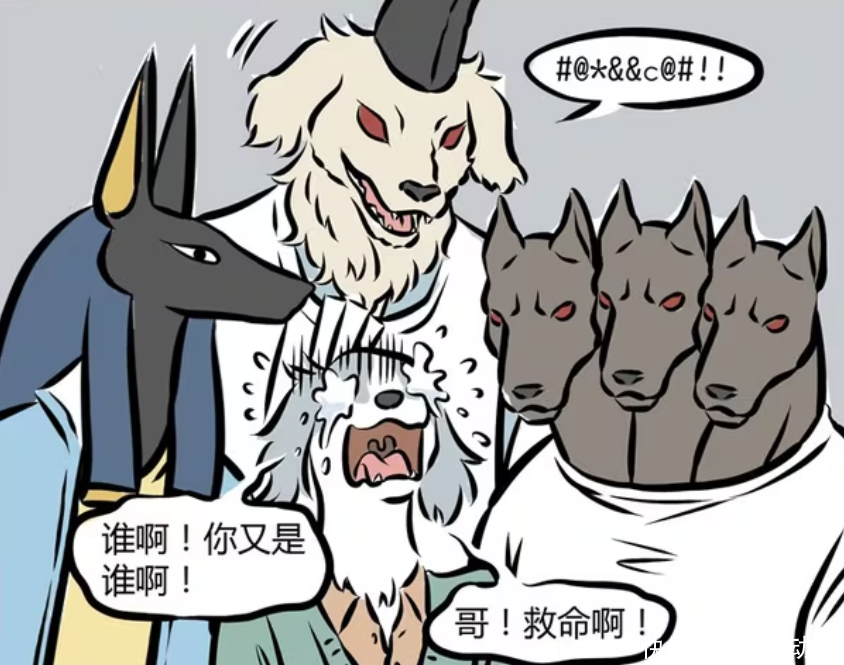 《非人哉》漫画版中,哮天为了跟敖烈一样受欢迎,所以将自己变成狗头人身模样。可是这样虽然回头率高了,但也被其他人盯上。阿努比斯、刻耳柏洛斯和犬神登场,哮天还被他们同化金港赢配资,变成了三头犬模样。