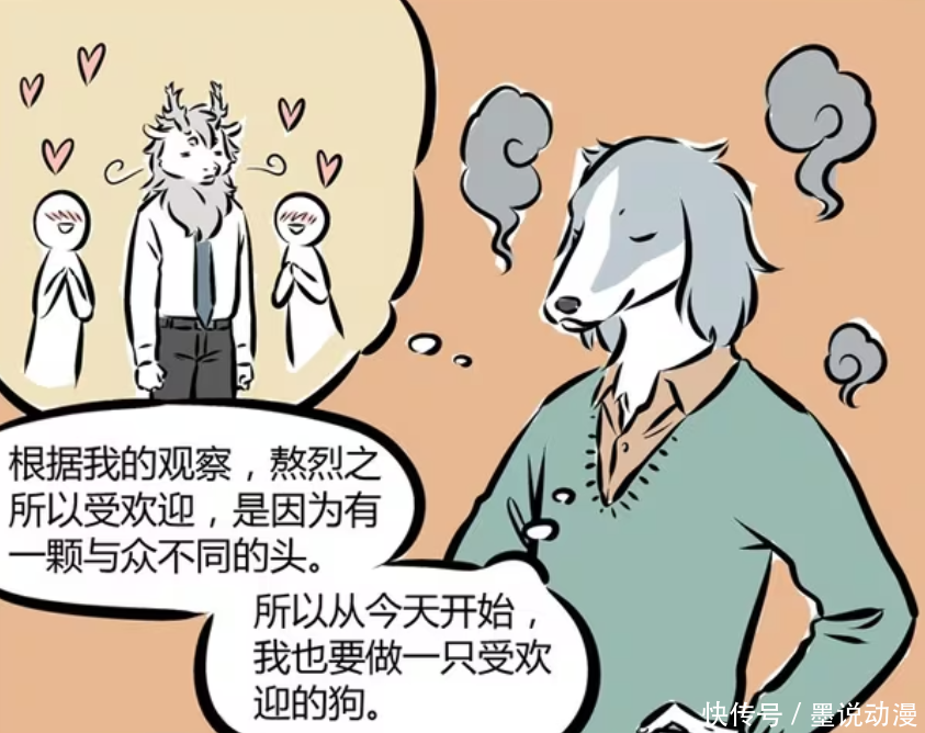 敖烈在《非人哉》漫画中很受欢迎,身边总是不缺一些崇拜者。哮天通过观察之后,发现敖烈之所以会如此,也是因为他有着一颗与众不同的头。平时敖烈都保持着龙头人身模样,所以哮天才觉得这是敖烈受欢迎的关键。为此哮天变成了狗头人身模样。